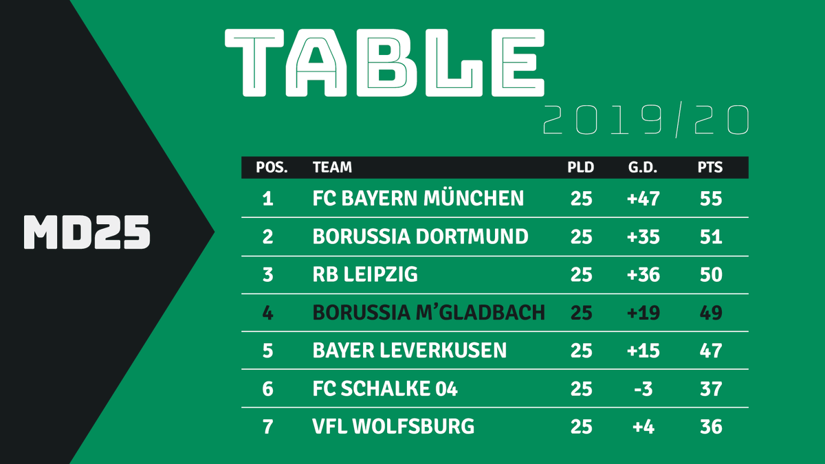 0 wins, 0 draws, and 0 losses. But if you look at the table for current form gladbach ist dead last in the league. Calendrier, scores et resultats de l'equipe de foot de 1. Complete table of bundesliga standings for the 2020/2021 season, plus access to tables from past seasons and other football leagues. Data for players, different formations, situations, game states and etc.