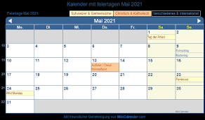 Appenzell innerrhoden, appenzell ausserrhoden, bern, basel land, basel stadt, genf, graubünden, jura, sankt gallen, schaffhausen, thurgau, waadt und zürich. Mai 2021 ein den sonntagen gleichgestellter feiertag: Mai 2021 bis freitag, 28. (pfingstsonntag 23.mai geschlossen ) lausanne täglich geöffnet. Scroll down to view the national list or choose your canton's calendar.